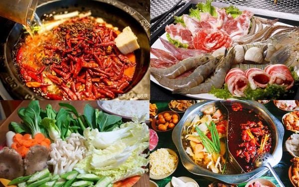 🥘 Nồi lẩu: Thường dùng nồi 2 ngăn (lẩu Uyên Ương) hoặc 3 ngăn. Một ngăn cay nồng, các ngăn còn lại thường là lẩu nấm hoặc lẩu cà chua để cân bằng vị giác.'
