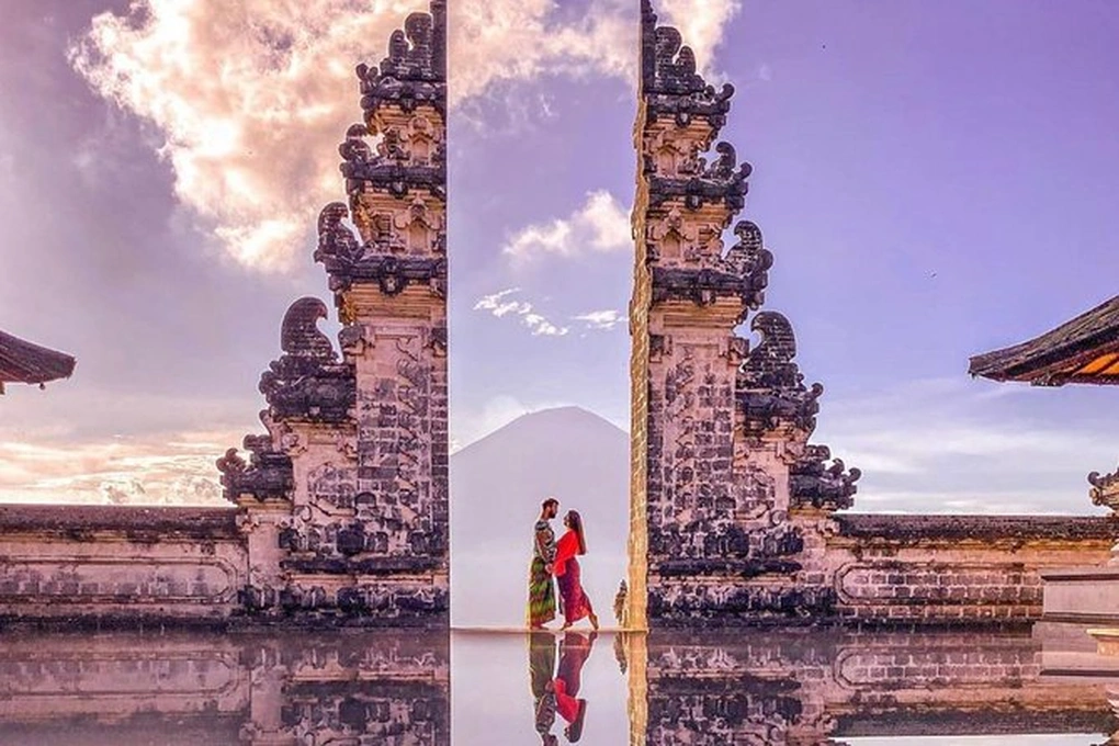 - Đền Cổng trời Lempuyang - nơi đây là một trong chín ngôi đền chính cổ nhất còn sót lại trên núi cao, mang đậm dấu ấn văn hóa tôn giáo đặc trưng của người Bali, ở Indonesia, nằm ở độ cao 1.170m so với mặt nước biển - nơi giao thoa mang sự huyền bí giữa con người và thần linh. Sau khi quý khách bước qua những bậc thang, bạn sẽ bị choáng ngợp trước vẻ đẹp hùng vỹ, tuyệt diệu của thiên nhiên. Núi và mây hòa quyện rồi cùng vẽ nên bức tranh thủy mặc đẹp hút hồn; đúng như tên gọi, cánh cổng rạch ngang trời được xây dựng làm biểu tượng cho ranh giới giữa thế giới bên ngoài và ngôi đền.